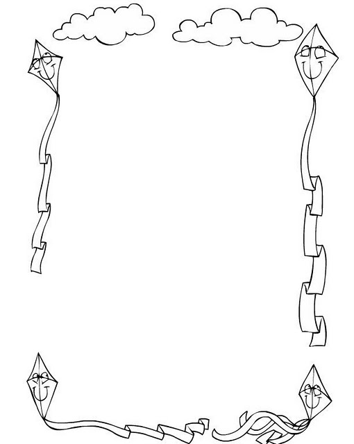 Borde de cometas y Nubes para colorear e imprimir