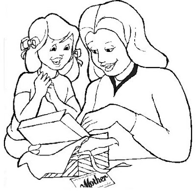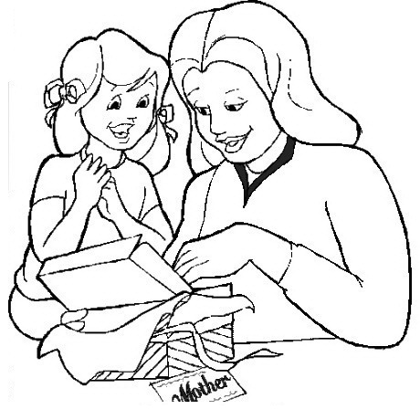 Hija entregando regalo a Mamá para colorear