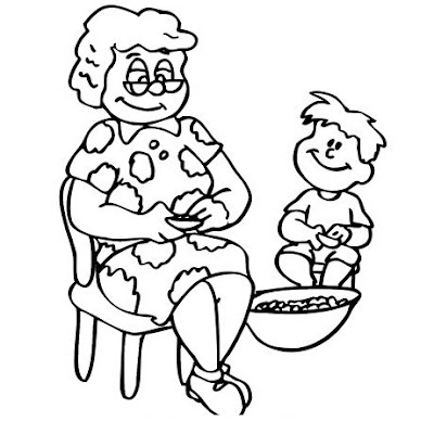 Abuela con nieto para colorear