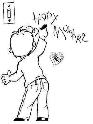 Niño escribiendo en pared para colorear