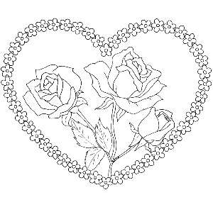 Dibujos de Flores, Flores, Rosas para colorear, Rosas para Pintar, Dibujos de Amor, Dibujos para Día de los Enamorados, Rosas encerradas en corazón para colorear y pintar
